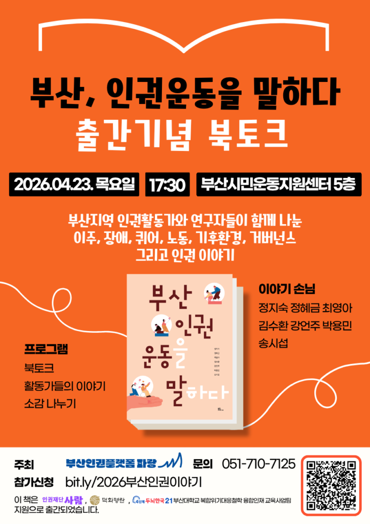 2025๋ ๋ด๋ถํฐ ๊ฒจ์ธ๊น์ง, ํ๋์ ๋ถ์ฐ์ง์ญ ์ธ๊ถํ๋๊ฐ์ ์ฐ๊ตฌ์๋ค๊ณผ <๋ถ์ฐ์ง์ญ ์ธ๊ถ์ด๋ ์ธ๋ฏธ๋>๋ฅผ ์งํํ๋ฉฐ ๊ฐ์์ ํ์ฅ์์ ๋ง์ฃผํ ์ง๋ฌธ์ ๊บผ๋ด๊ณ , ์๋ก์ ๊ฒฝํ๊ณผ ์ฌ์ ์์ ๋ฐฐ์ฐ๋ฉฐ, ๋ถ์ฐ์ง์ญ ์ธ๊ถ์ด๋์ ์ด์ ์ ์ค๋์ ๊น์ด ํ๊ตฌํ๋ ์๊ฐ์ ๊ฐ์ก์ต๋๋ค. ์ง๋ 1๋ , ์ฑ์คํ๊ณ ๋ ์น์ดํ ๊ณต๋ถ์ ๊ฒฐ๊ณผ๋ฅผ ํ ๊ถ์ ์ฑ ์ผ๋ก ์ฎ์์ต๋๋ค.