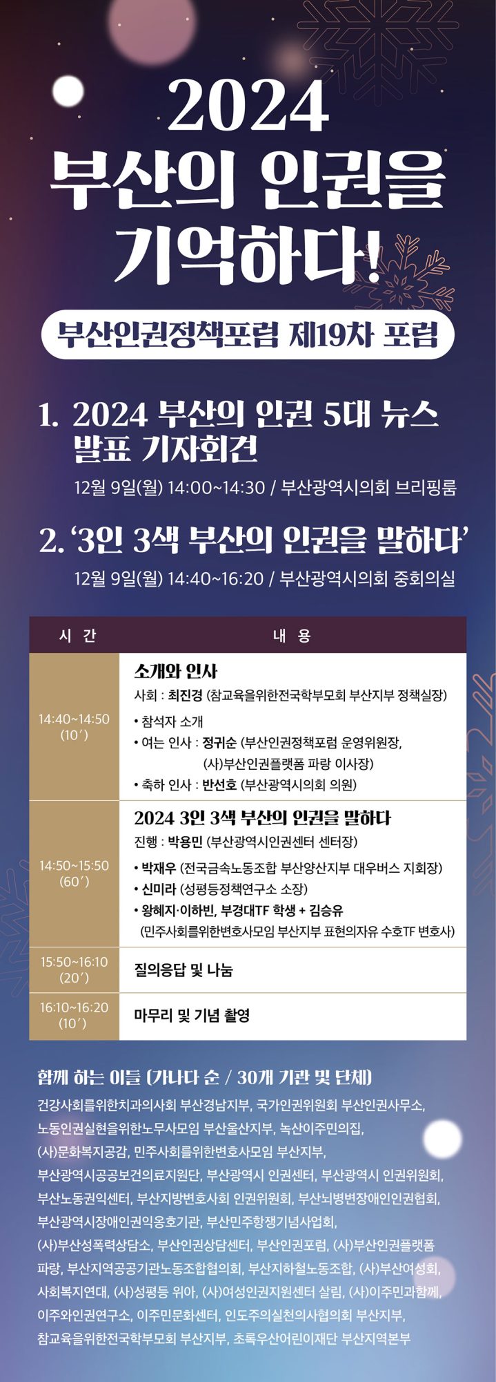부산인권정책포럼 2024 부산의 인권을 기억하다!