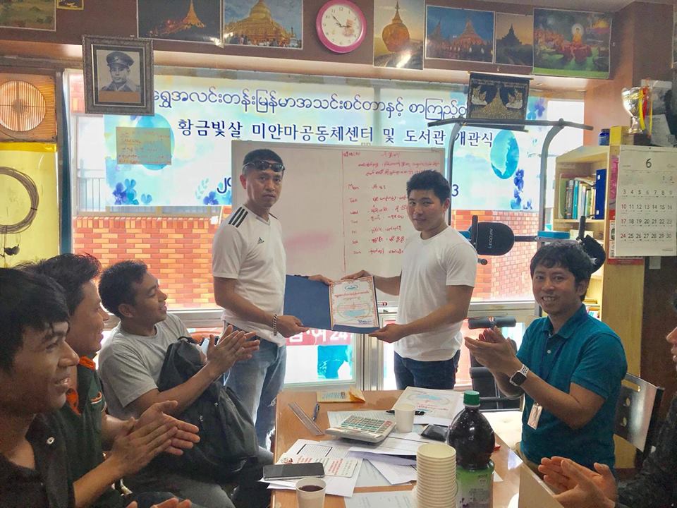2012년에 설립된 부산·경남지역 미얀마 이주노동자들의 ‘황금빛살 미얀마공동체’🌼가 있습니다. 경남 김해에서 작은 도서관과 쉼터를 운영하면서, 일자리를 구하는 사람들, 건강상의 이유로 직장을 그만둔 사람들에게 무료로 휴식 공간과 식사를 제공하고 있어요. 또한 미얀마의 가난한 대학생들을 위한 장학금 지원 프로그램도 진행해 왔습니다. 저는 그 공동체의 고문을 맡고 있는데, 공동체에서는 2021년 미얀마 군사 쿠데타 이후 내전 피난민들이 어려움을 극복할 수 있도록 돕고 있습니다. 공동체의 구성원들은 낮에는 일을 하고, 퇴근 후 밤에는 온라인 회의에 참석합니다. 주말에는 미얀마의 민주주의를 위한 캠페인🔊과 모금 행사를 진행합니다. 누가 강요해서 억지로 하는 것이 아니라 해야 한다는 의무감으로 하지만, 종종 무력감에 지칠 때도 있습니다.