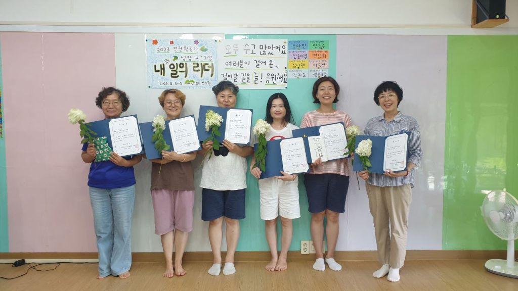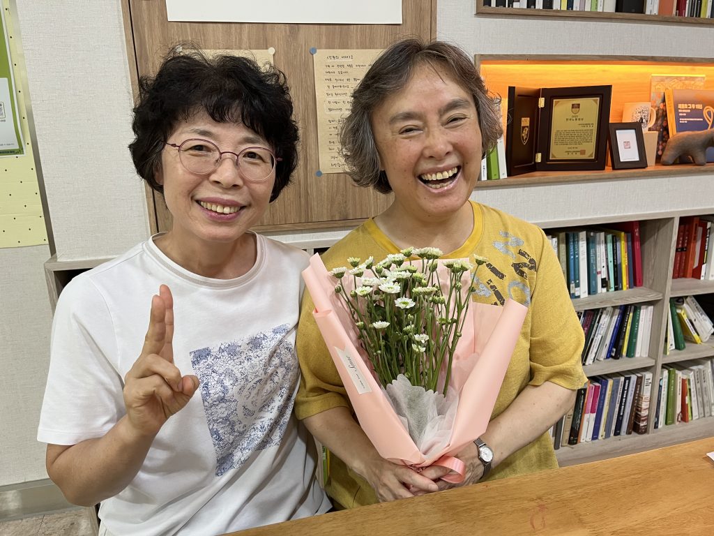 해고된 후 결혼했는데 곧 IMF가 터졌어요. 인쇄업을 하던 남편의 사정이 점점 어려워지던 중 2001년 자활사업이 제도화되면서 지역자활센터가 생겨났고, 다시 입사했어요. 그리고 맡은 사업을 잘 수행하여 부산 1호 자활기업인 부산돌봄사회서비스센터를 창립💐하게 되었어요. 경제적으로 어려운 분들이 취업하고 창업하는 과정을 지켜보며 남 일 같지 않아 보람 있고 즐거웠어요. 돌봄공동체의 첫걸음이지요.