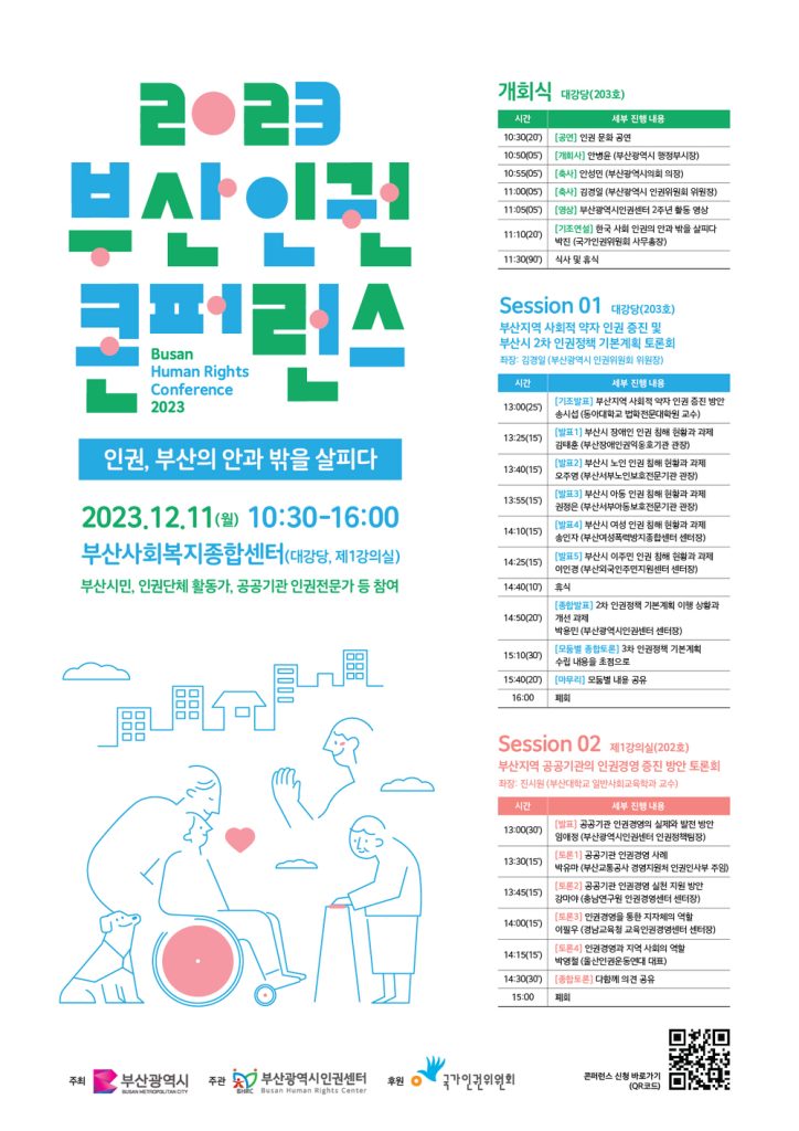 12월 10일 세계인권선언의날을 맞이하여 인권센터는 부산시와 함께 12월 8일부터 15일까지 인권주간을 운영한다고 합니다. 인권콘퍼런스를 비롯하여 인권영화상영회, 인권특강 등 많은 행사가 있다 하니, 우리 함께 완주해보시지 않을랍니까? 😛