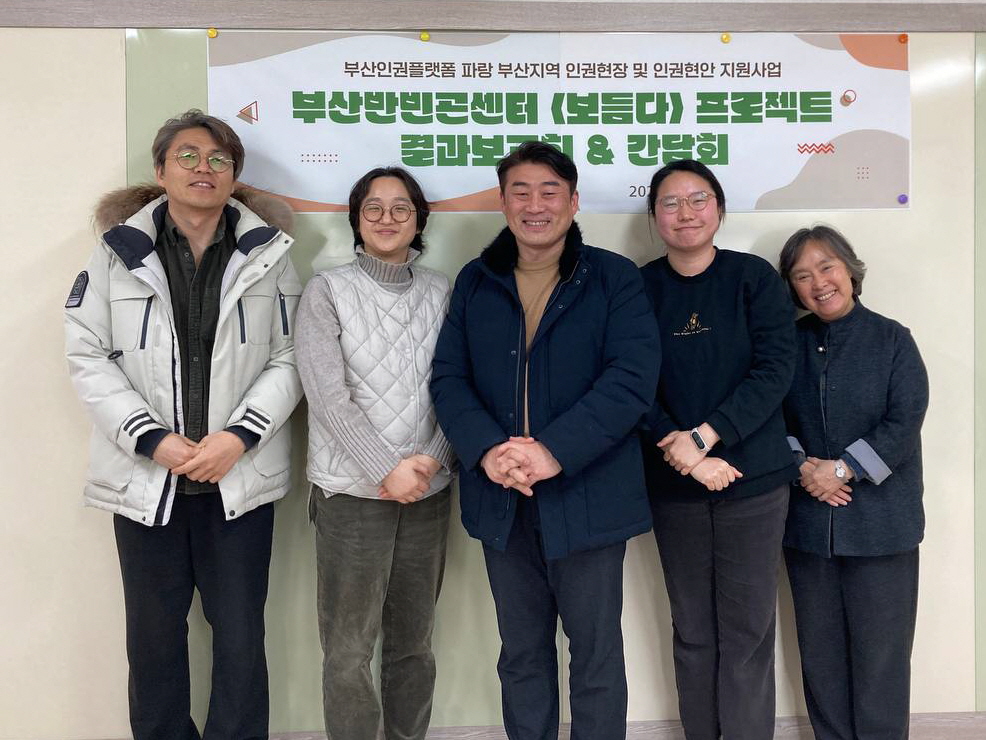 부산반빈곤센터에서는 1인 가구 주민들이 스스로 인권을 찾아갈 수 있도록 돕고 조직한 <보듬다> 사업보고와 함께 제도의 사각지대를 ‘보듬는’ 생활공동체로서 주민조직운동의 현장에 대해 알려주셨고, 향후 <인권현장지원사업>이 소규모라도 좀더 많은 인권현장에 힘이 되는 지원사업으로 이어지기를 기대한다는 의견을 주셨습니다. 후원처인 ㈜나눅스네트웍스에서는 어려운 여건에서도 인권의 가치를 지키고자 현장을 버티는 활동가와 단체들의 현황에 깊은 관심을 표해주셨습니다. 파랑은 시범사업을 통해, 중간지원조직으로서 사업운영에 필요한 역량을 점검하고 보완해가기로 하였습니다.