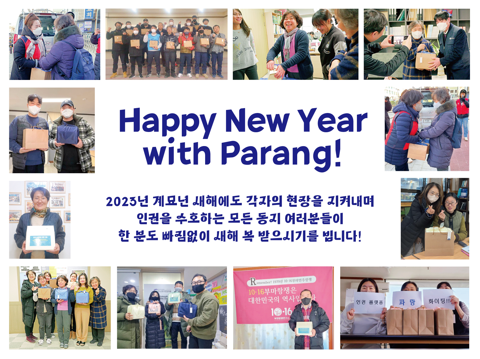 2023년 설날 인사드립니다. 공지 2023년 계묘년 새해에도 각자의 현장을 지켜내며 인권을 수호하는 모든 동지 여러분들이 한 분도 빠짐없이 새해 복 받으시기를 빕니다! ♥592023년 01월 20일2023년 07월 25일공지지금 파랑은