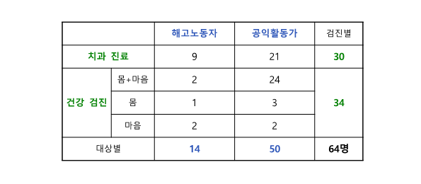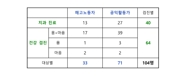 (지원 자릿수로는 치과 진료 – 40 / 건강 검진 – 60)