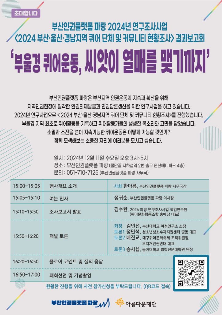 [2024 부산울산경남지역 퀴어 단체 및 커뮤니티 현황조사 결과보고회 🌈]