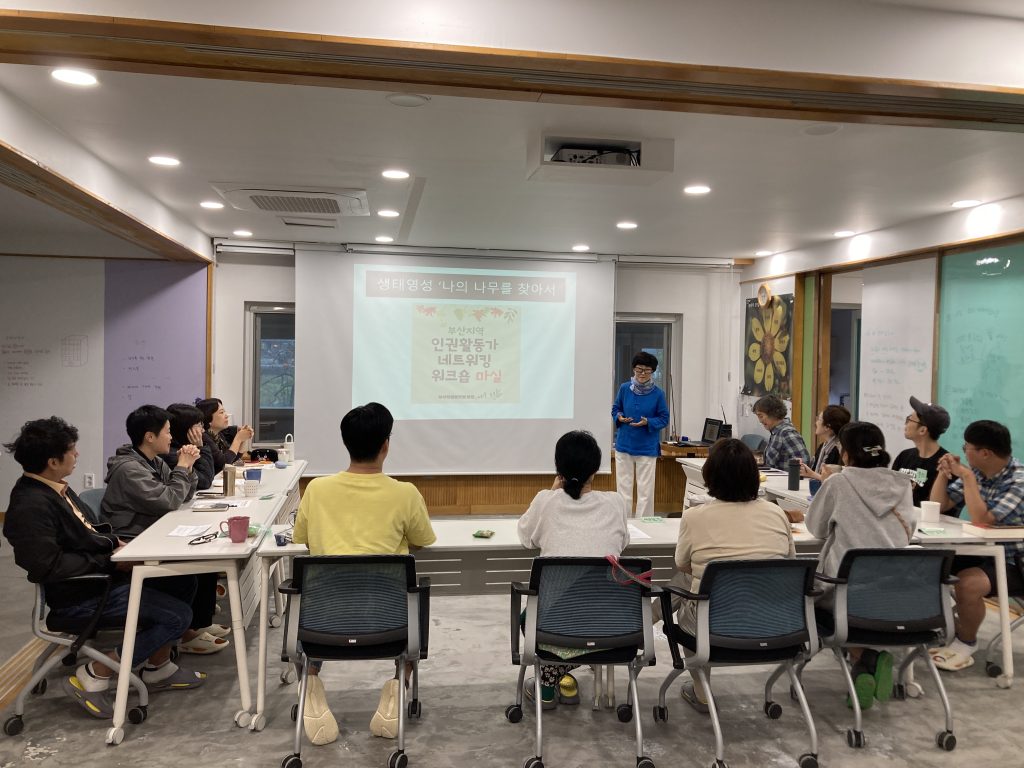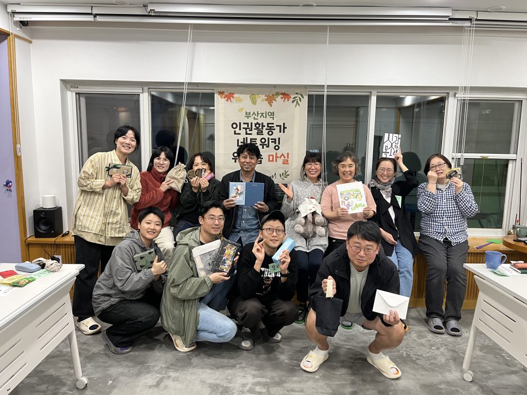 맨발동무도서관, 부산에너지정의행동, 부산외국인주민지원센터/황금빛살 미얀마 공동체, 부산인권플랫폼 파랑, 부산환경운동연합, 사단법인 두루, 여성인권지원센터 살림 부설상담소, 퀴어문화협동조합 홍예당 소속 활동가들과 성소수자인권운동 활동가, 1인 시민활동가까지 각자의 영역에서 저마다의 방식으로 부산지역 인권운동에 애쓰고 있는 13명의 활동가들이 한 자리에 모여 크게 웃기도 조용히 눈물을 훔치기도 가만히 침묵을 나누기도 했답니다.