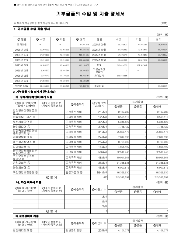 (위 내용은 국세청 홈택스 공익법인 결산 공시/공개 열람을 통해서도 확인하실 수 있습니다.