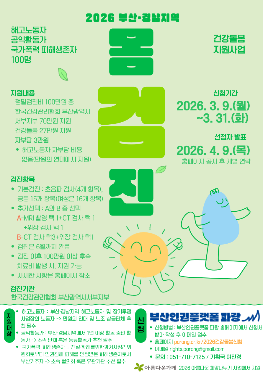 2026 부산·경남지역 해고노동자, 공익활동가, 국가폭력 피해생존자 건강돌봄지원사업