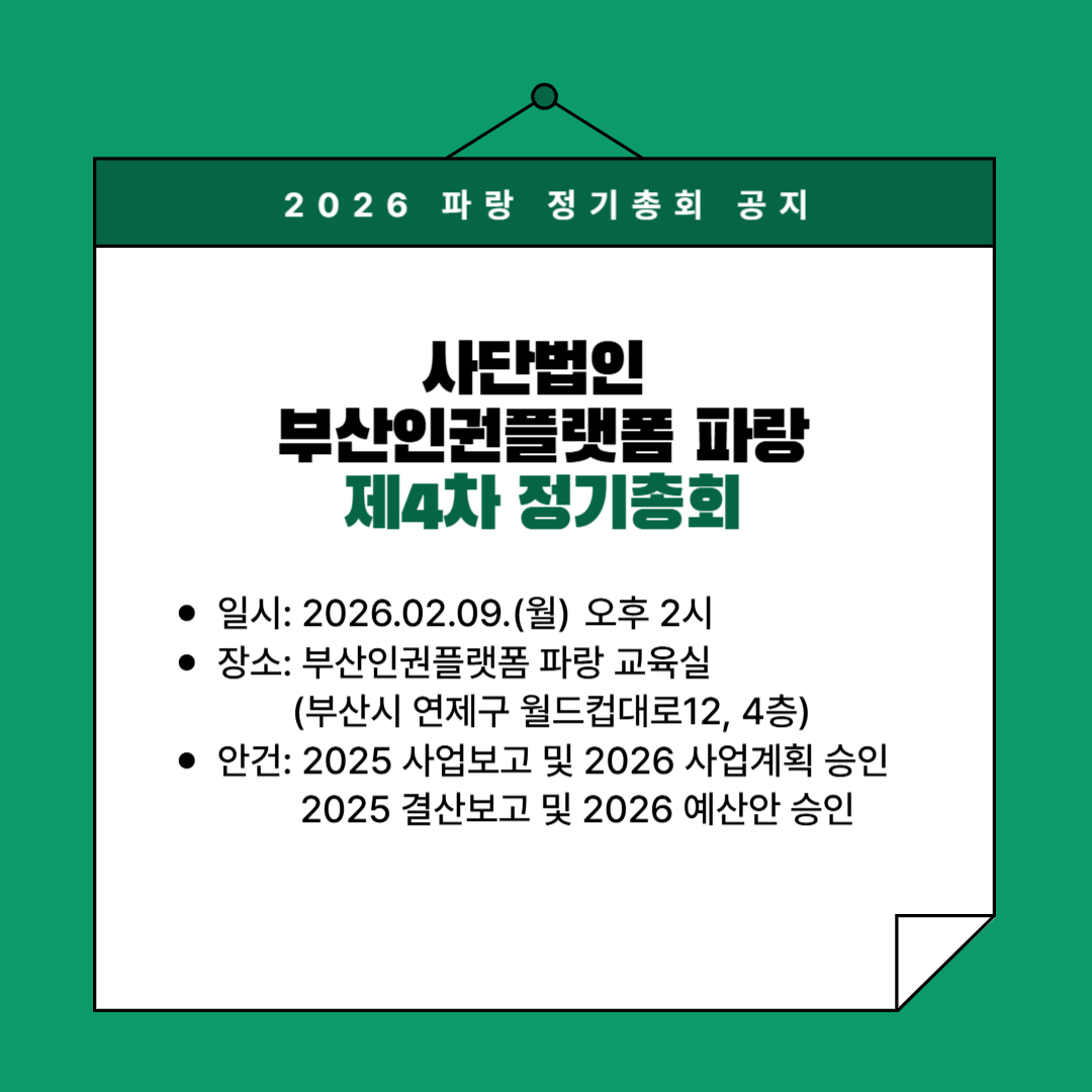 ☆ 총회 장소 : 부산인권플랫폼 파랑 교육실