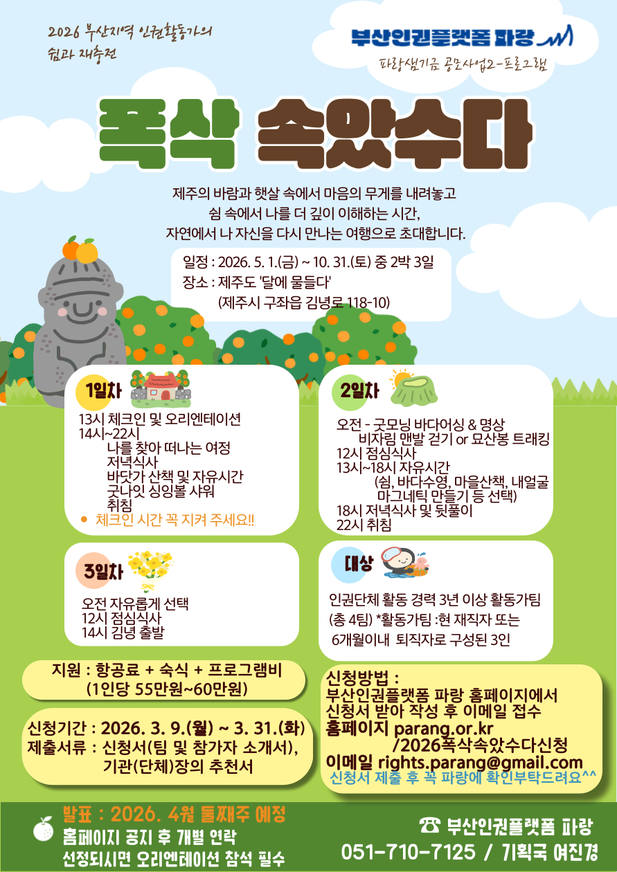 2026 부산지역 인권활동가의 쉼과 재충전을 지원하는 파랑샘기금 공모사업Ⅱ– 프로그램